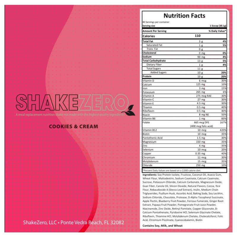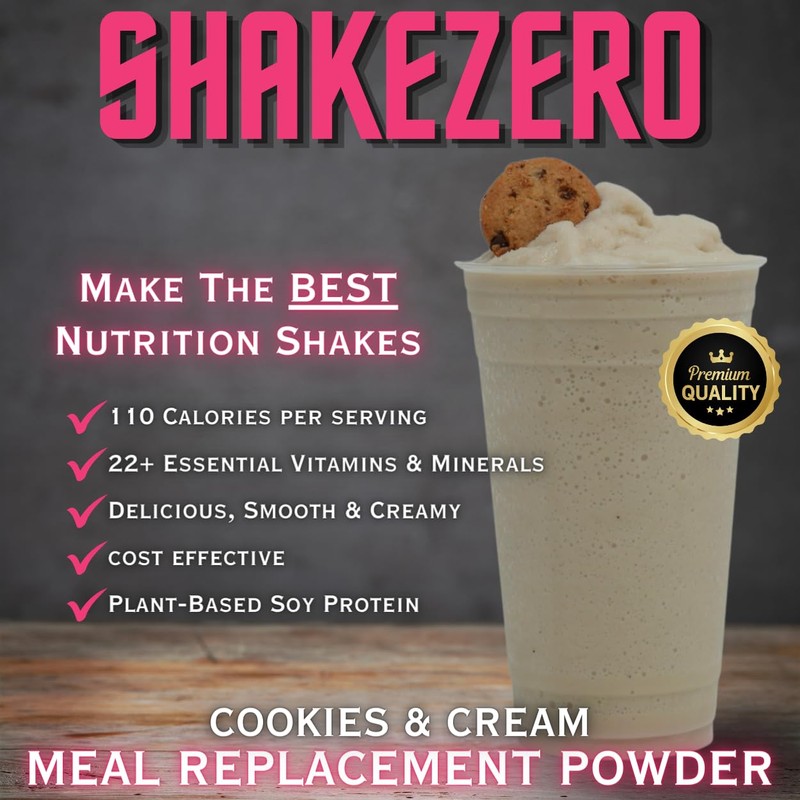 Shakezero Cookies & Cream (1-5lb Pkg) ~ Plant-Based Protein Powder Meal Replacement Shake Mix