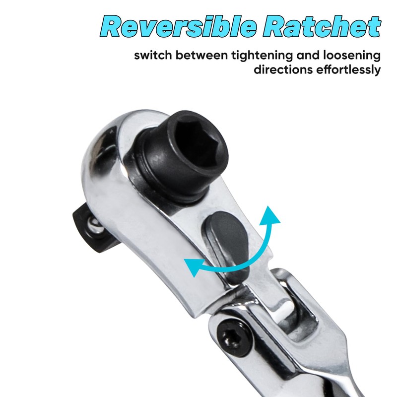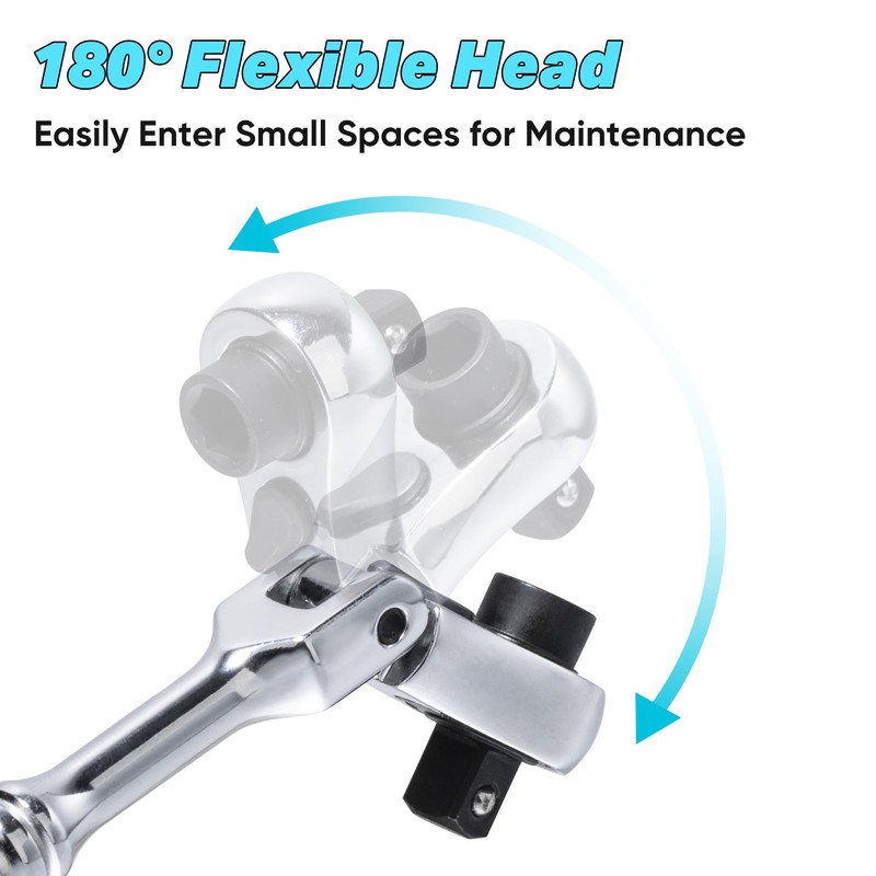- [Revolutionary Head Flexibility] Featuring a 180° swiveling head, the flex head ratchet offers unparalleled versatility. With just a 5° swing arc, it effortlessly adapts to tight spaces and awkward angles, making even the most challenging repairs a breeze. Its innovative design eliminates the need for multiple tools or awkward positions, streamlining your workflow and saving time