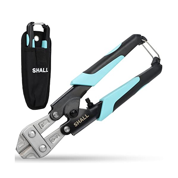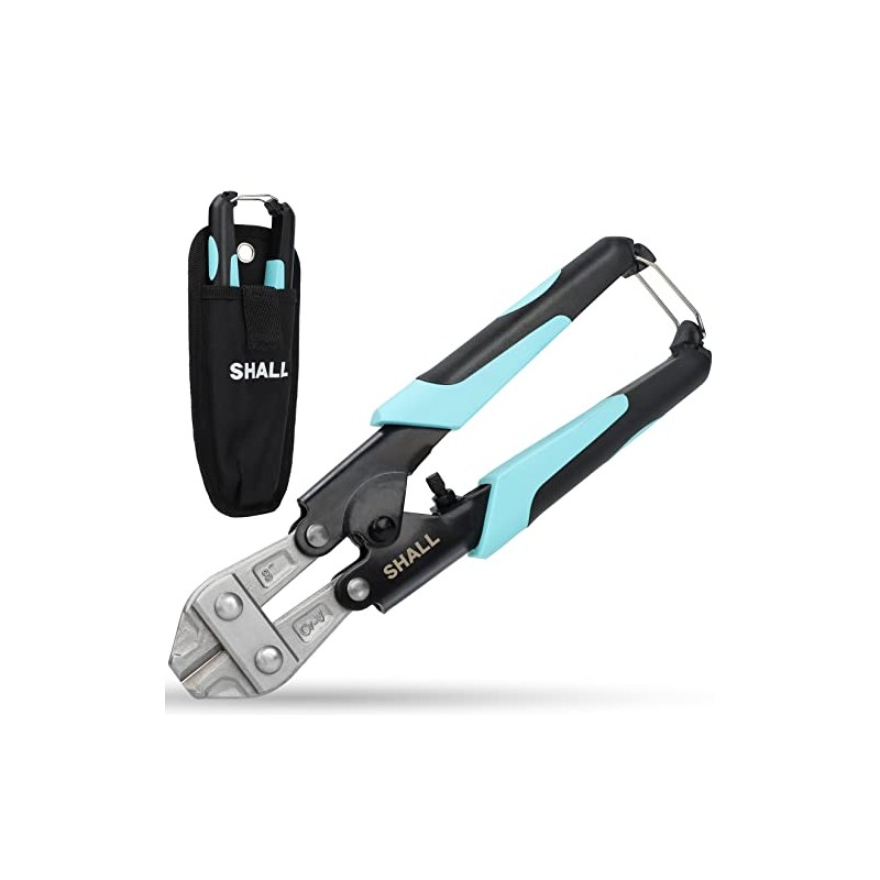SHALL Mini Bolt Cutter, 210mm/8-inch Heavy Duty Wire Cutter, Two-Color Ergonomic Handle, Security Lock, More Efficient Leverage & Adjustable Opening, Belt Bag Included