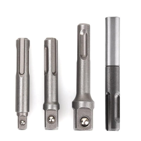 Shallho 4 Pieces Drill Socket Adapter Set, SDS Plus Socket Adapter, 1/4 Inch Hex Socket Adapter, 1/4 Inch, 3/8 Inch, 1/2 Inch Square Socket Extension, Drill Bit Adapter