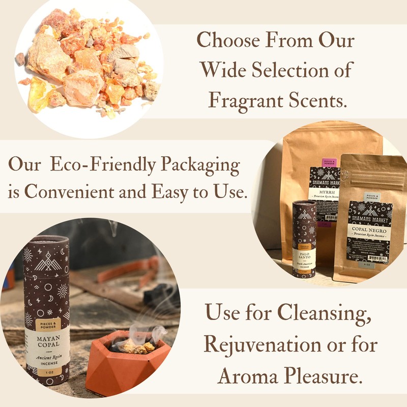 Copal is sacred to the indigenous cultures of the Central and South Americas. It is burned year-round in the churches in Mexico but is best known for its use in homes during the Day of the Dead. It is said that the familiar scent of Copal helps the souls find their way back during their annual visit home. This copal has a light, sweet, and very pleasant aroma. Its uses can be for inspiration, attraction, invocation, happiness, and celebration. Blanco White Copal sourced from Indonesia. Here at Shamans Market, we have a wide collection of some of the best-smelling resin incense available anywhere. Sourced ethically from fair trade sources whenever possible, our products feature single resins, as well as products that blend a number of different incense resins together. What is tree gum tree (resin) incense? Incense comes in many different forms. Stick incense is possibly the most common, followed by other types such as cone and coil incense. Resin incense is just another form, one characterized by being less processed, as it’s harvested directly from the resin, or sap, of different trees instead of being ground into a powder and pressed into a specific shape. You can blend resin from two or more trees together or combine resin with select herbs to create a blend of incense resin. You can also keep your resins separate to create an incense when placed on your incense burner, that provides just that scent and none others.