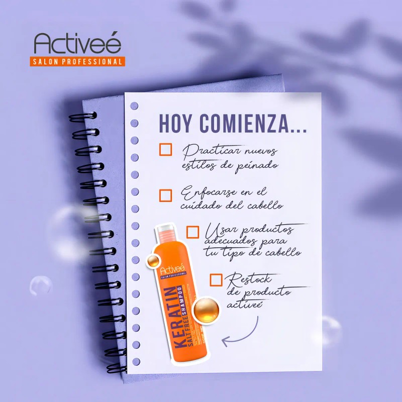 Shampoo Activee Professional Keratin Tecnologia para cuidado Intensivo de Cabello Quimicamente tratado Libre de Sal