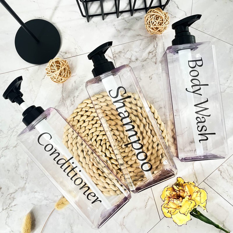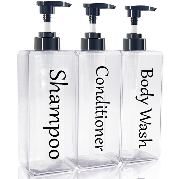Shampoo and Conditioner Dispenser(Clear, Set of 3, 27oz)- Refillable & EmptyShampoo and Conditioner Bottles- Body Wash Dispenser Set-Modern Shampoo Bottles for Shower Soap
