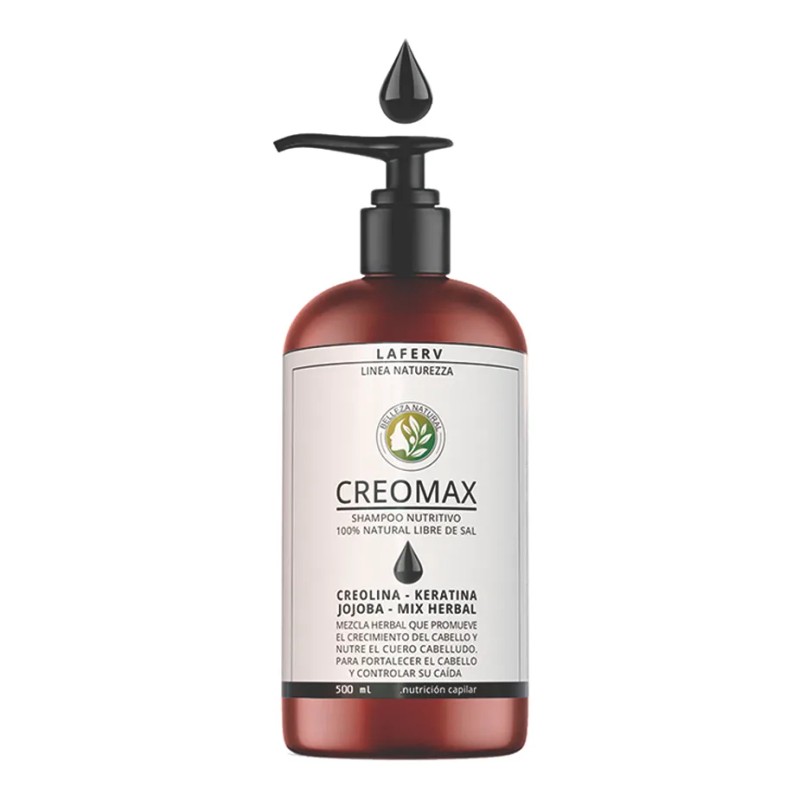Transforma tu cabello y revitaliza tu cuero cabelludo con nuestro Shampoo Creolina + Activos Naturales, en su presentación de 500ml, la solución definitiva para combatir la caída y desvelar un brillo espectacular. Este poderoso shampoo, también conocido como CreoMAX Natural, está formulado con una sinergia única de ingredientes naturales para un cuidado capilar completo.