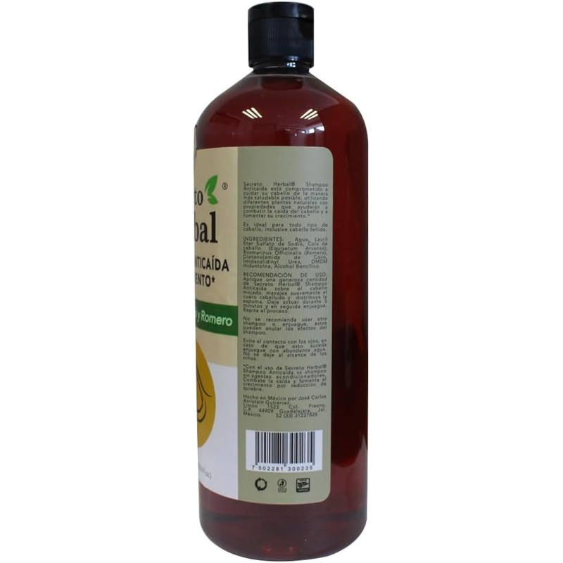 Shampoo de Caballo y Romero, anticaída y cremiento Secreto Herbal. 1 litro