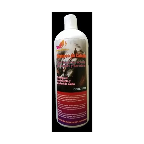 Descripción Limpia: Shampoo de cola de Caballo, con biotina, keratina y aceite de argán. Fortalece tu cabello, estimula el crecimiento, aumenta el volumen, elimina el frizz, limpieza profunda y aroma fresco