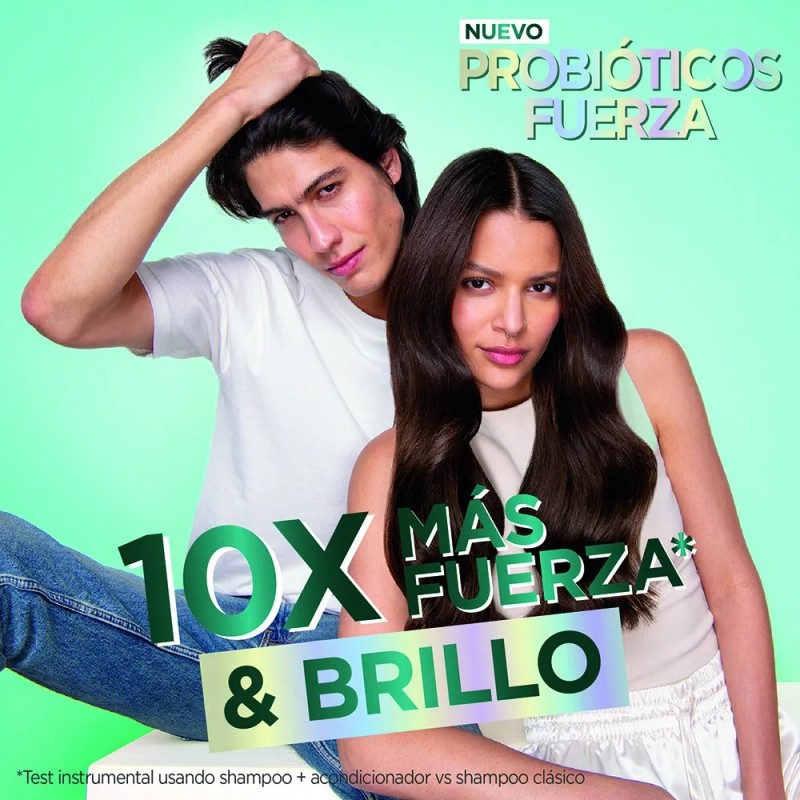 El kit incluye un Shampoo Fortificante 2 en 1 de 650 ml y una Crema para Peinar 10 en 1 de 300 ml, ambos enriquecidos con óleo de marula y fracciones de probióticos que fortalecen y equilibran el cabello desde la raíz. La fórmula vegana, libre de parabenos, sulfatos y aceites minerales, ofrece hasta 10 veces más fuerza y brillo, siendo adecuada para cabello frágil y dermatológicamente testeada. Además, el envase está hecho de plástico 100% reciclado y todos los productos son cruelty free, con un contenido total en volumen de 2.177 litros y un peso de 1.03 kg.