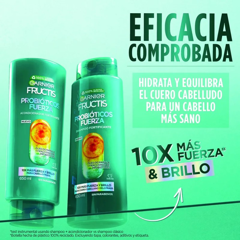 Shampoo Garnier Fructis Fructis Probioticos Rutina 2 pasos de marula en botella de 2.177L de 1.03kg por 2 packs de 950mL