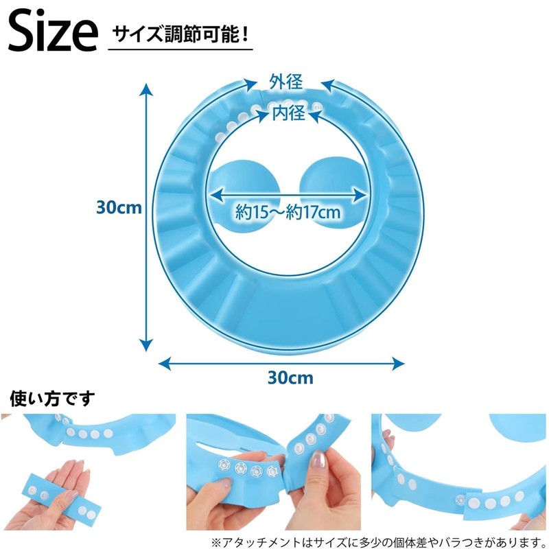 - (Easy Adjustment) The "Pita Fit" shampoo hat has a traditional button type and Velcro type so you can adjust the size with a single touch. The size can be adjusted to a fine amount of size, so it will block water from the gaps. It will support your whole family for a long bath time