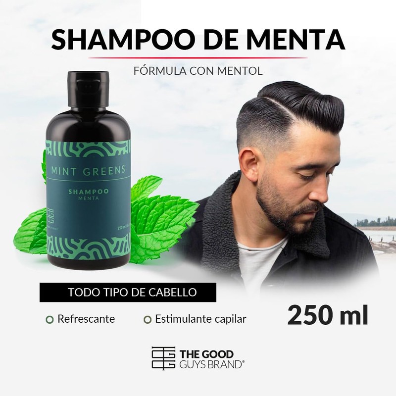 Shampoo Hombre 250ml | Para Limpieza Profunda | Propiedades Exfoliantes y Antioxidantes | Cabello Limpio, Fresco y Revitalizado | THE GOOD GUYS (Menta)