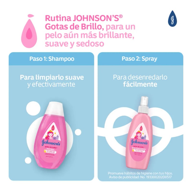 Debe ser aplicado por un adulto o bajo la supervisión de uno. No usar caso que el cuero cabelludo presente algún tipo de lesión o irritación. Realza el brillo natural del cabello, dejándolo suave y con un toque sedoso. Los productos Johnson's son desarrollados para cumplir con los más altos estándares de seguridad de ingredientes.