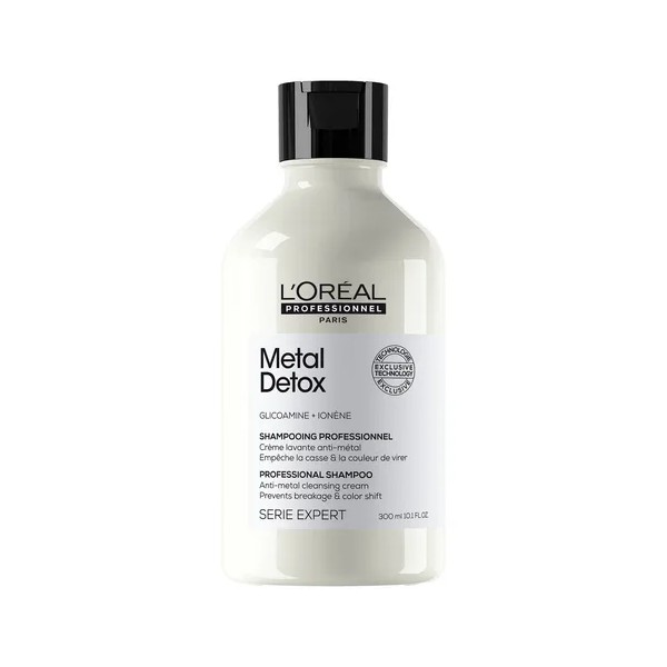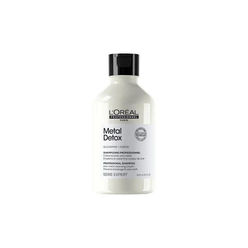 Shampoo L'oréal Professionnel Metal Detox 300ml protege la fibra capilar de los depósitos de partículas tras servicios de coloración, balayage o iluminaciones. Su fórmula ayuda a prevenir el riesgo de quiebre y mejora los resultados de dichos tratamientos.