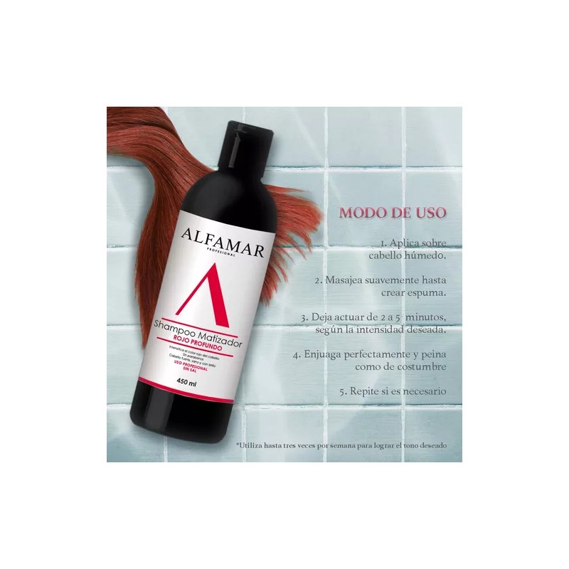 Shampoo Matizador Rojo Profundo Alfamar Sin Sal Para Cabello rojo cobrizo y naranja