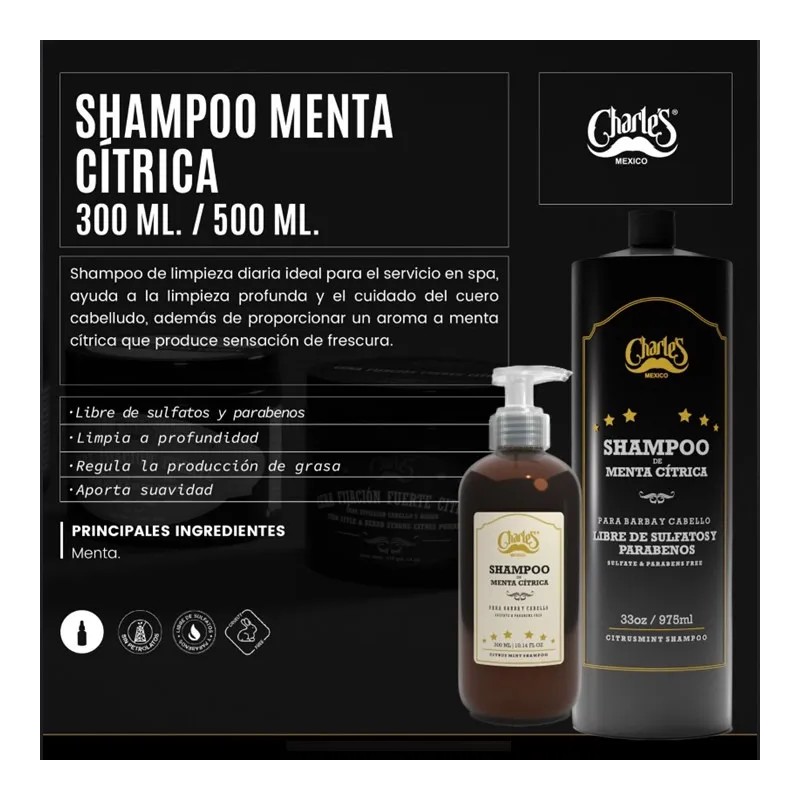 Shampoo Menta Cítrica 300 Ml Charle's Para Barba Y Cabello