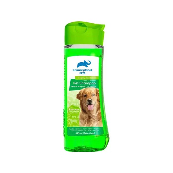 Descripción Limpia: El Shampoo para Mascotas de la reconocida marca Animal Planet es un producto especialmente diseñado para el cuidado de tus mascotas, siendo ideal tanto para perros como para gatos. Presentado en una práctica botella de 610 ml, este shampoo no solo ofrece una fragancia refrescante de Aloe Vera, sino que también incluye un extracto cítrico natural en su fórmula. Este ingrediente activo ayuda a eliminar los malos olores, manteniendo limpio y sano el pelo de tu mascota. Además, acondiciona el pelaje, dejándolo suave y brillante. Este producto pertenece a la línea de pet shampoo de Animal Planet, reconocida por su calidad y eficacia. Importante destacar que es un producto hipoalergénico, lo que significa que es seguro para todas las mascotas, incluso para aquellas con pieles sensibles. Con el Shampoo para Mascotas de Animal Planet, tu perro o gato siempre lucirá un pelaje saludable y radiante.