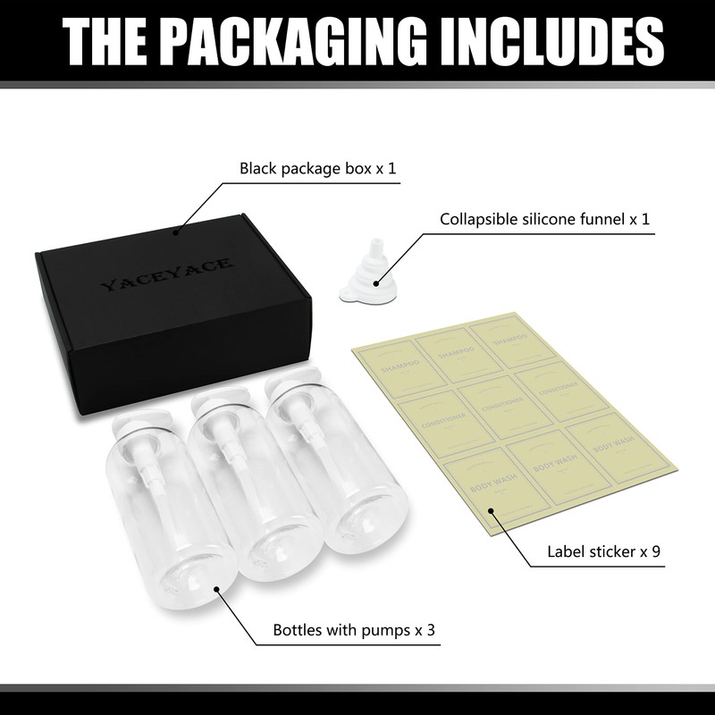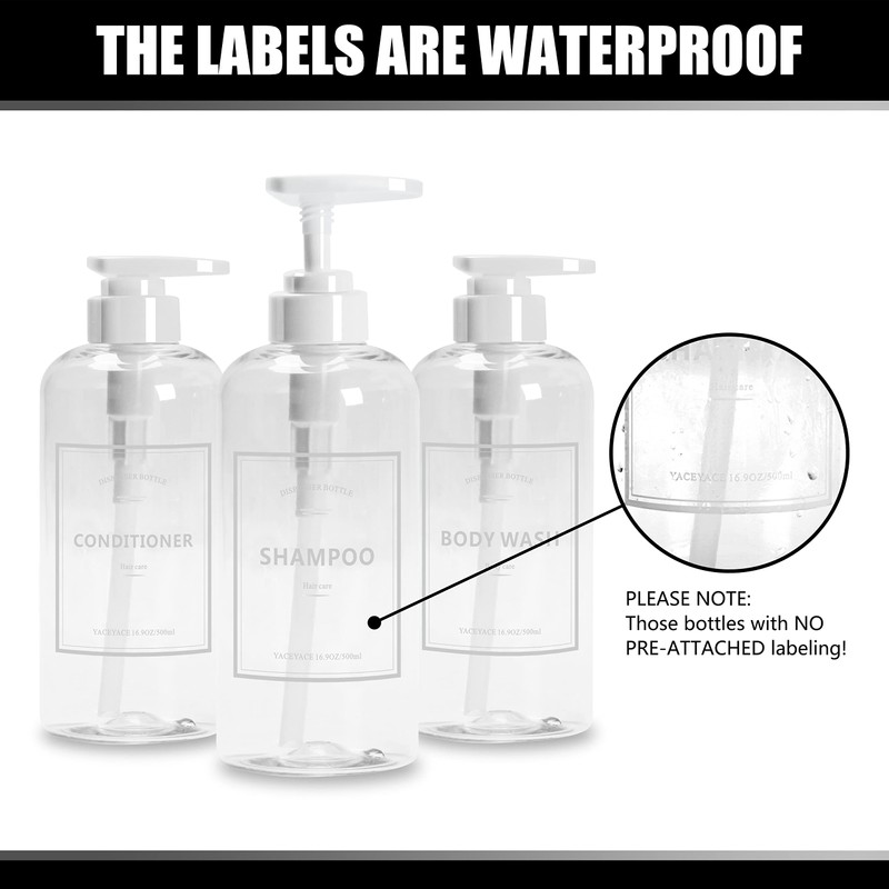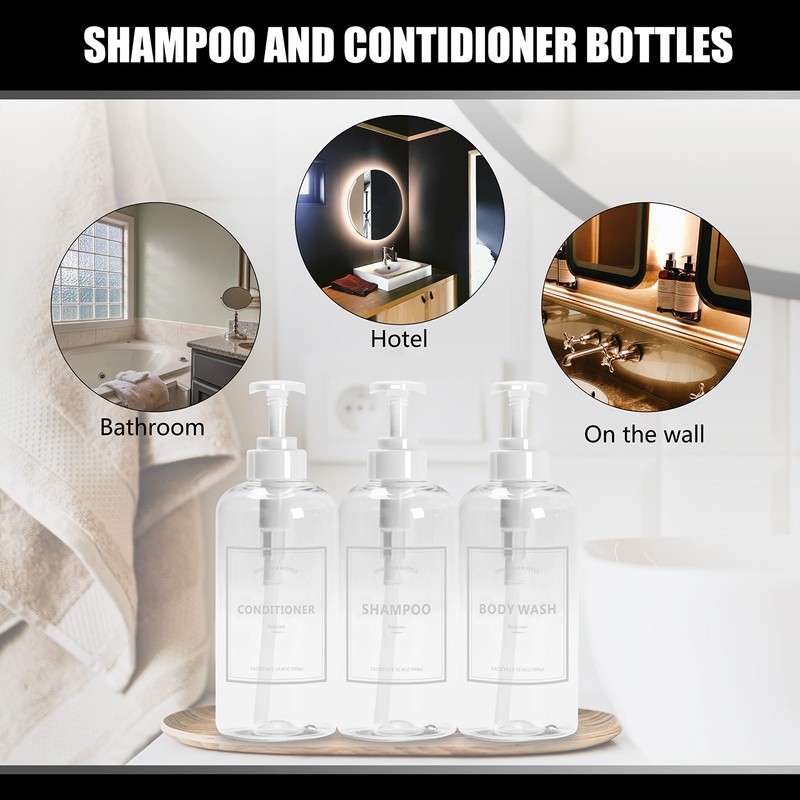 Shampoo Pump Dispenser, YACEYACE 3Pcs 16.9oz Clear Shower Soap Dispenser Empty Shampoo Bottles with Pumps Refillable Shampoo and Conditioner Bottles Shampoo Bottles Refillable with Pump