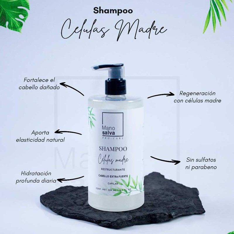 Shampoo Reconstructor de Células Madre, 500 ml, Fortalece Cabello Dañado