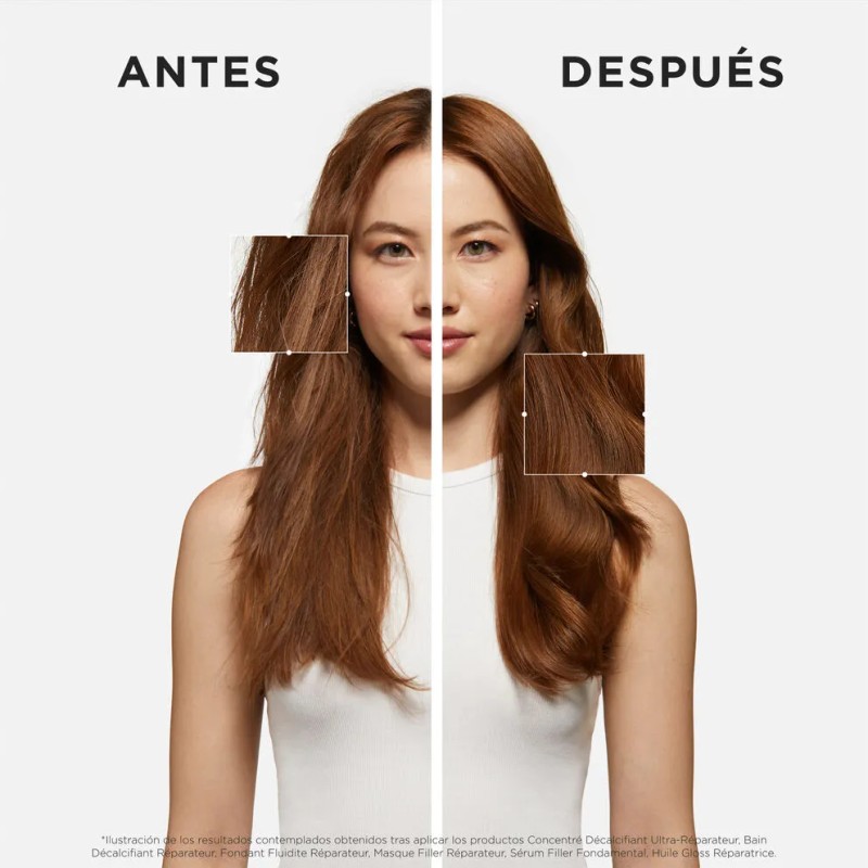 Para transformar por completo tu rutina capilar, combina este increíble champú con el Concentré Décalcifiant Ultra-Réparateur y descubre un cabello que recupera hasta el 99% de su fuerza original. 💫