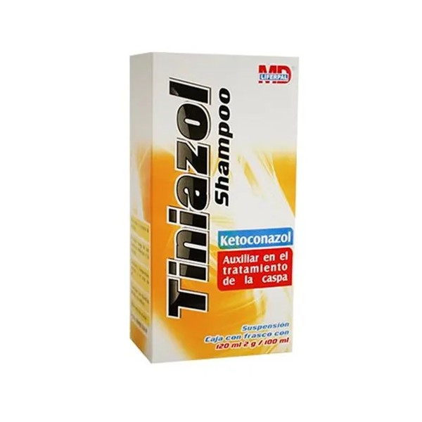 Tratamiento anticaspa: El Shampoo Tiniazol contiene un principio activo, como el ketoconazol, que tiene propiedades antifúngicas y ayuda a combatir los hongos que pueden causar la caspa y la dermatitis seborreica.