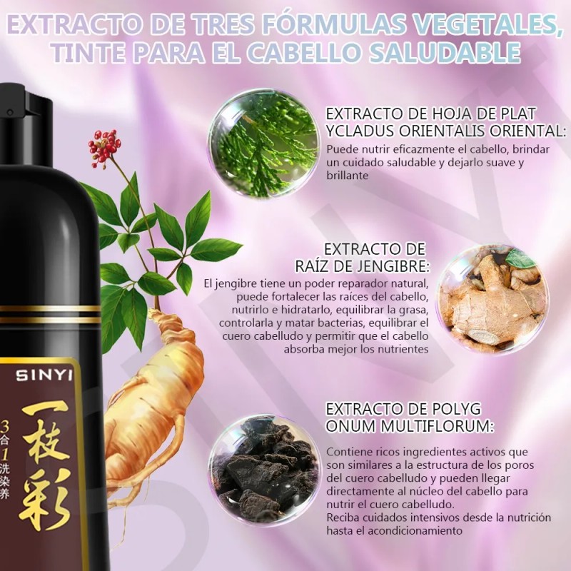 Shampoo Tinte Instantáneo Cubre Canas Natural Jengibre 500ml – ¡Color Vibrante y Cabello Rejuvenecido en Minutos! 🧡🌿✨