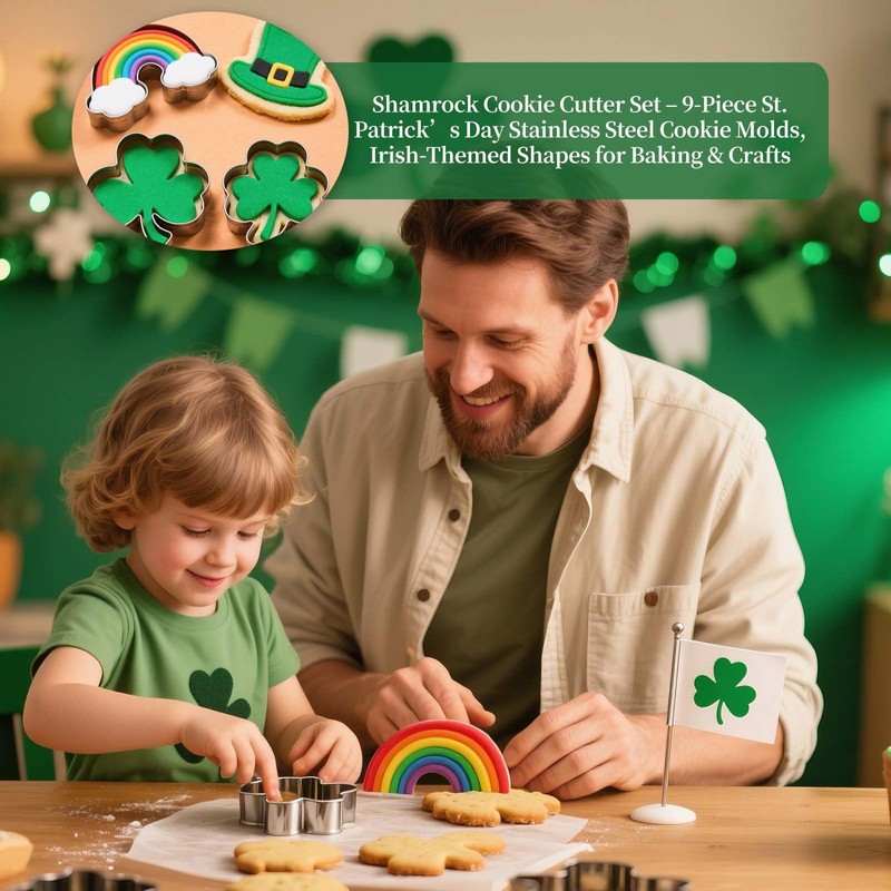 Shamrock Cookie Cutter Set – 9-Piece St. Patrick’s Day Stainless Steel Cookie Molds, Irish-Themed Shapes for Baking & Crafts, Cookie Cutter Kingdom - Cookie Cutters