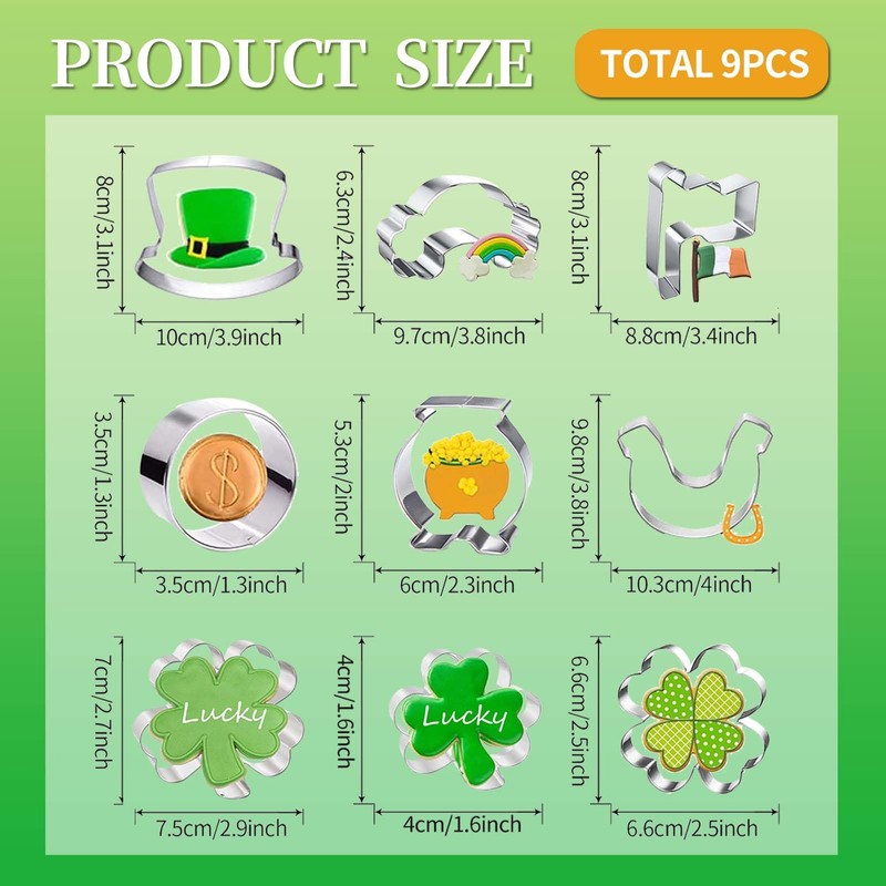 - Durable stainless steel: Each piece in this 9-piece St. Patrick’s Day cookie cutter set is made from premium stainless steel, ensuring durability and rust resistance. Use them year after year to create festive treats and enjoy the holiday baking tradition.
