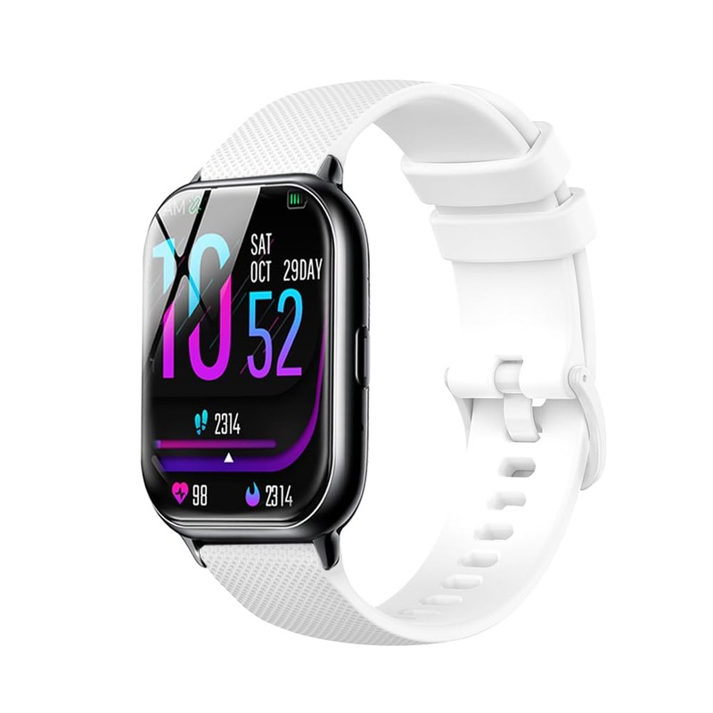 [SHANCHI] koolep (2025) R8 1.85インチ 用 交換バンド 22mm スマートウォッチ用 シリコンバンド エコ素材 小さなグリッドパターンデザイン 防水防汗 カード式バックル 長さ調節簡単 快適な通気性(ホワイト)