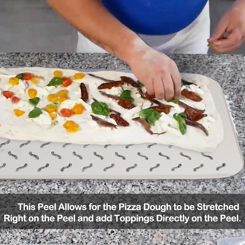 - THE PIZZA PREPARATION CAN BE DONE DIRECTLY ON THE BOARD;The rectangular shape of the pizza peel offers a large surface area to stretch dough and add toppings directly on the peel.