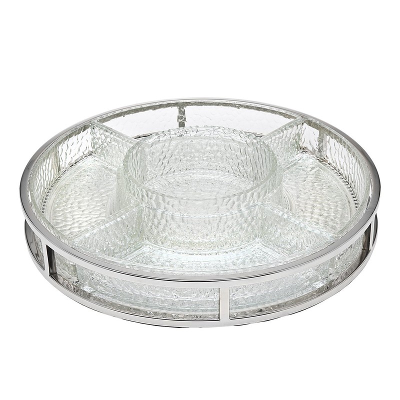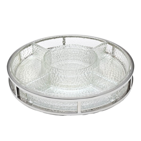 Shannon Crystal Galleria Glass and Metal Serving Set