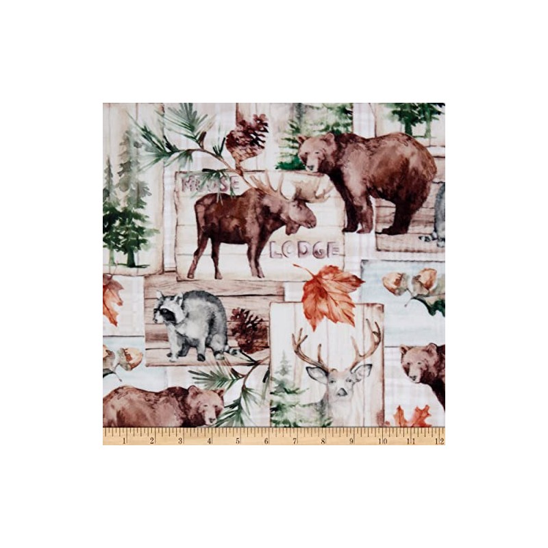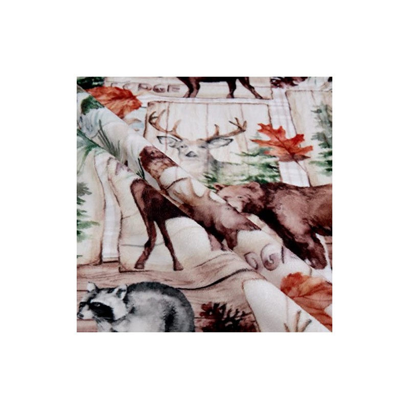 • This Cuddle minky fabric has an outdoorsy, almost-rustic flair, featuring alternating bear, moose and deer illustrations paired with beautiful forest foliage. Perfect for creating a throw blanket for a cabin or forest-themed accent pillows and bedding.