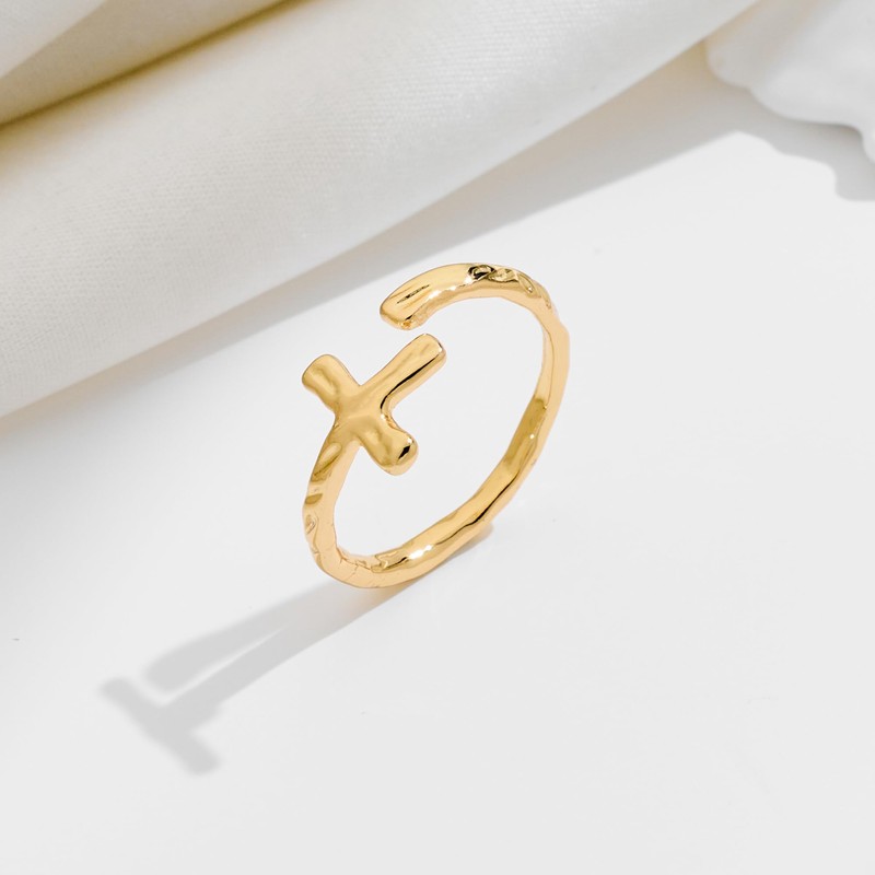 - Cross Rings: Featuring a striking cross design with gold plating, this ring is versatile. It works well alone for a sleek look or stacked for added style, complementing any outfit effortlessly.