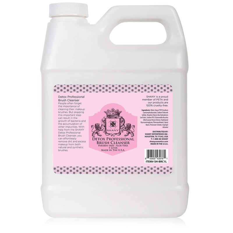 SHANY DETOX Professional Makeup Brush and Sponge Shampoo, Brush Cleanser, Removes dirt, Makeup from brushes and Sponges - Paraben Free, Vegan, Cruelty Free - Instant Dry - (32oz) 1 Liter