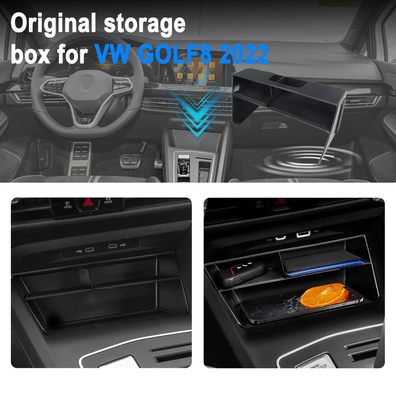 - Easy installation: No cutting, no tools required, easy to insert into the centre console, perfect fit for your car. NOTE This organizer is suitable for Volkswagen Golf MK8 2020 2021 2022 2023