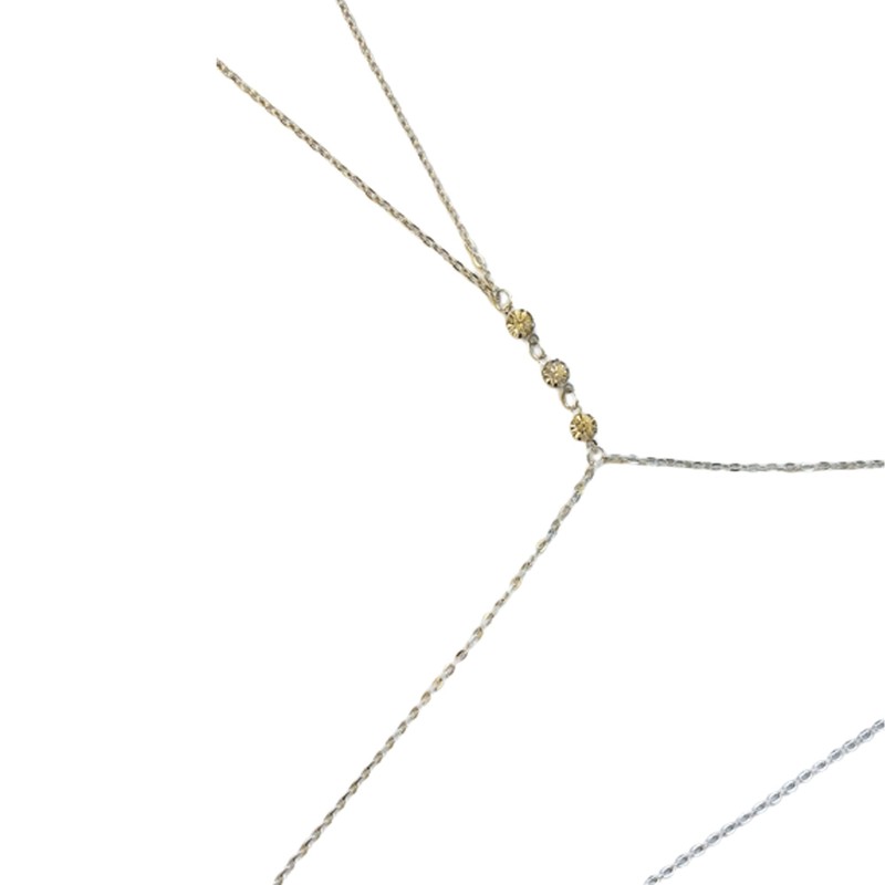 Introducing the Silver Jewel Body Chain, a stunning and trendy accessory that enhances your curves and adds a touch of elegance to any outfit. The three delicate jewels add a subtle yet noticeable sparkle that elevates your overall look. This body chain is versatile and can be paired with any attire - be it a bikini, a black t-shirt, or a dress. The tarnish-free material ensures that you can wear it to any occasion without worrying about discoloration. Please note that the body chain is not recommended for rough activities or tugging.
