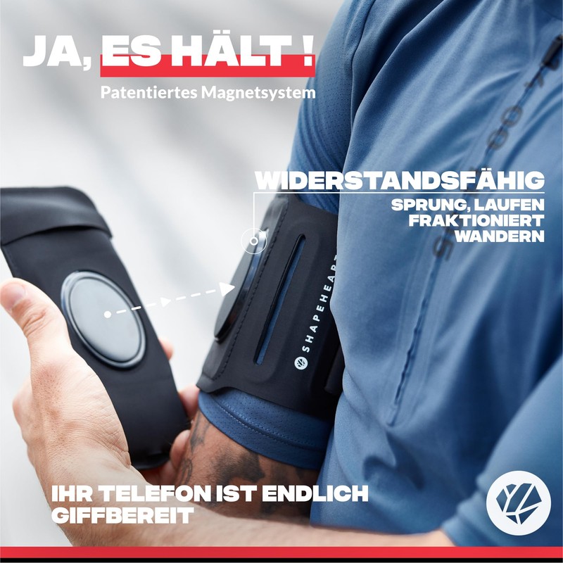 - The Shapeheart bracelet is the world's first magnetic sports phone bracelet. With its patented magnetic case, it allows access to the smartphone during activity without dislocating or removing the bracelet.
