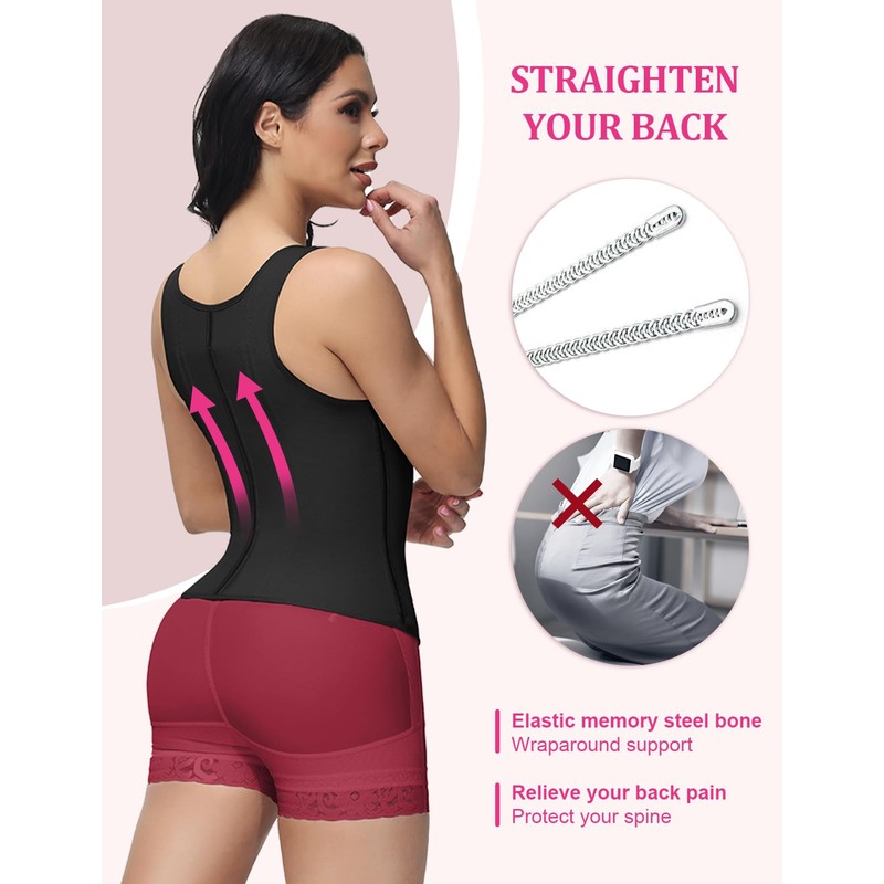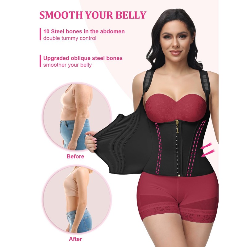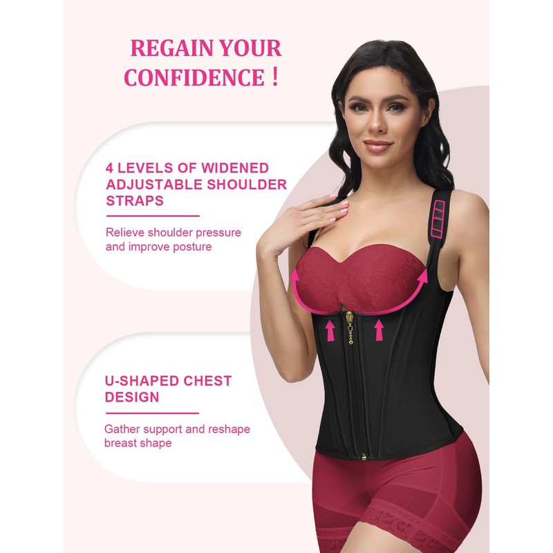 - Hourglass Waistline Is Not A Dream: The front chest of the corset waist trainer adopts a U-shaped design to make your chest straight, and 17 elastic memory steel bones surround it to enhance the support of the waist, back, and abdomen in all directions