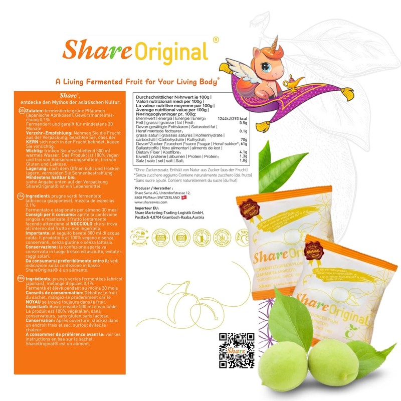 Share Original (7-pc Starter BOX) fermented Japanese apricot/plum 30+month fermented, vegan & individually wrapped, Share Swiss fermented