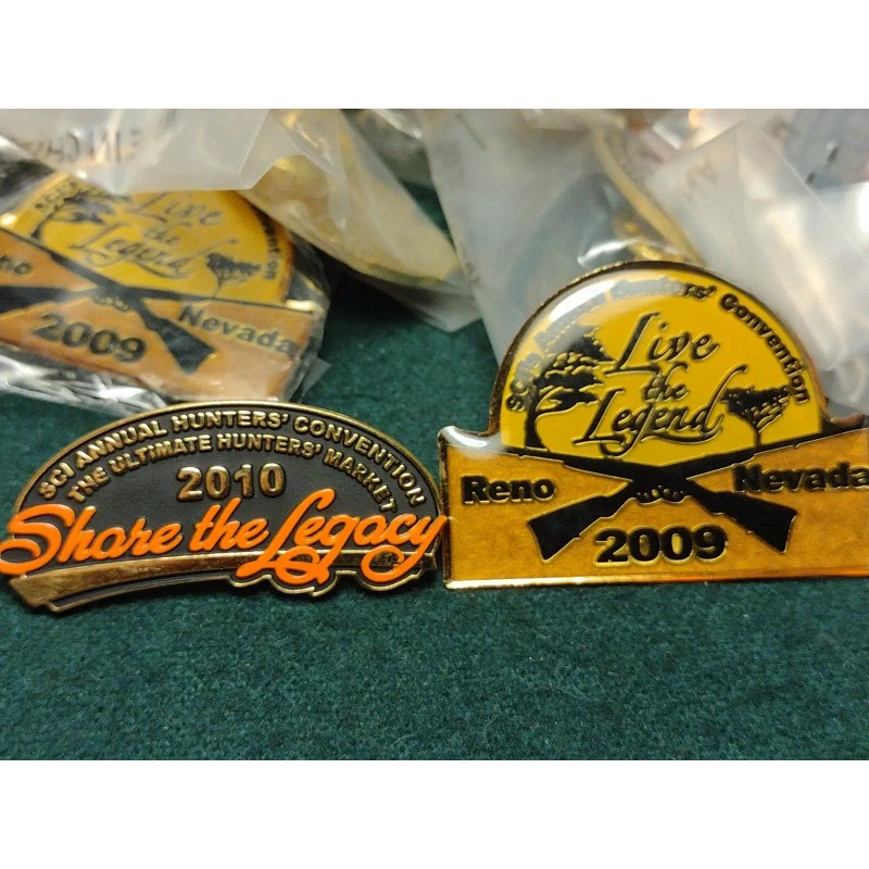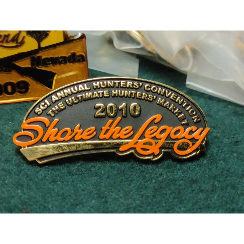 Safari Club International 2009 & 2010 Annual Hunters Convention in Reno Nevada, "Live the Legend" & "Share the Legacy" Hat, Lapel, Vest, or Range Bag Pins,1.5". Beautiful Hunters Sentiment collectible hat pins. Protecting hunters rights and wildlife conservation are SCI's two main areas of focus. Check my store listings for a variety of collectibles and have a great day!