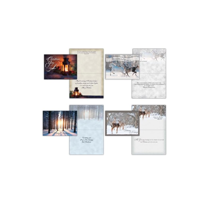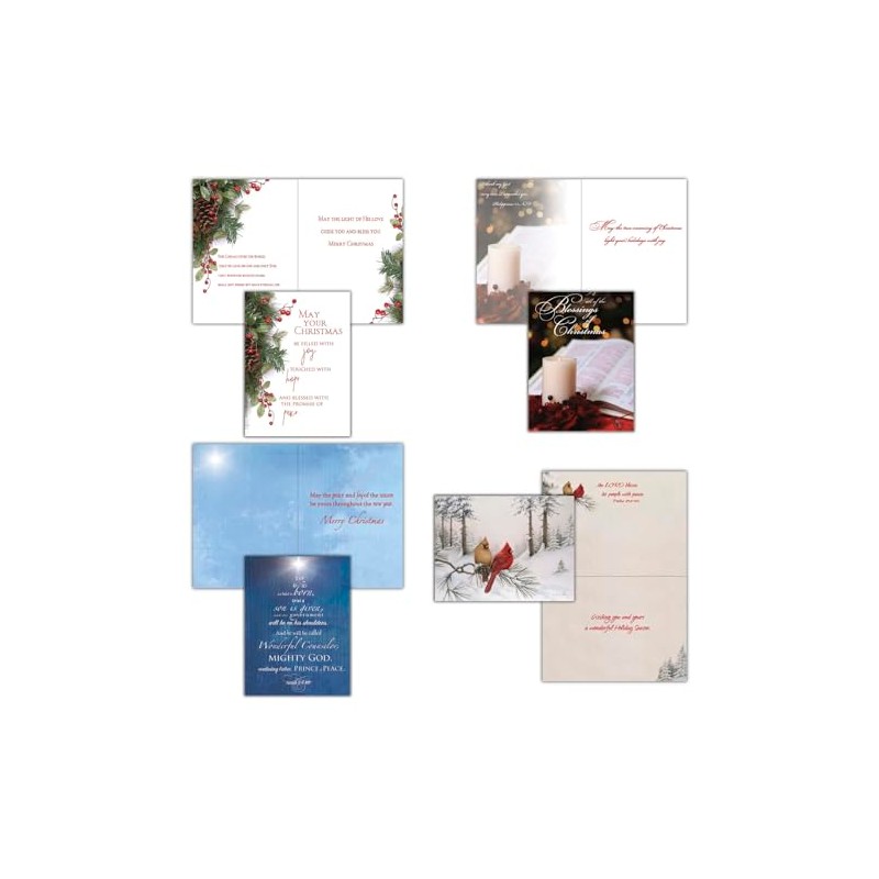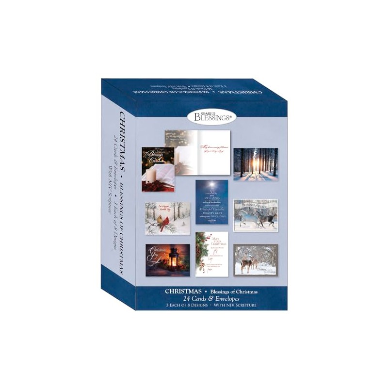 - HOLIDAY CARDS WITH ENVELOPES - Includes 24 assorted boxed religious Christmas cards with envelopes. Shared Blessings Christmas greeting cards feature 8 different designs and include 3 of each different design.