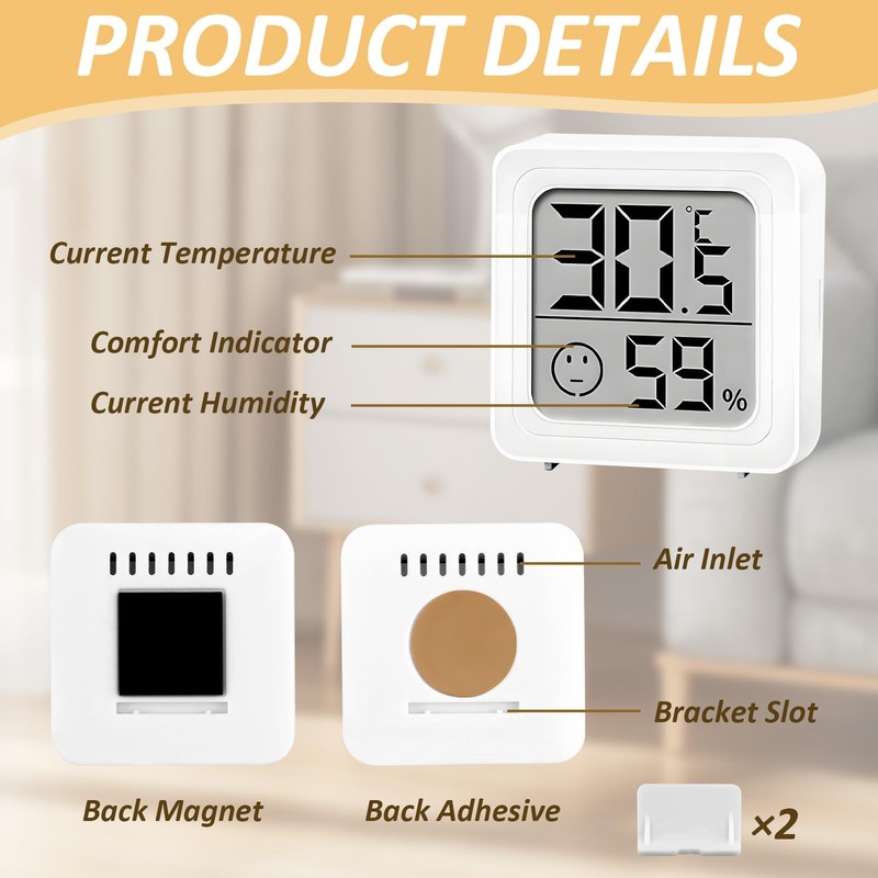 - Wide Range of Applications: Ideal for various settings, this indoor thermometer and hygrometer monitor temperature and humidity in living rooms, greenhouses, bedrooms, wine cellars, warehouses, offices, baby rooms, reptile habitats, terrariums, cars, plants, and wardrobes. Its reliability and accuracy make it a must-have for maintaining optimal conditions in any environment.