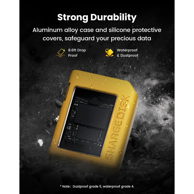 - Muy duradero: suficiente para resistir el trato duro. Con una calificación IP54 impermeable y a prueba de polvo, puedes disfrutar de la fotografía o trabajar al aire libre con la seguridad de que tus datos están protegidos de manera segura contra el agua y el polvo. Incluso con una caída de 2 m, la construcción resistente y la innovadora funda exterior de silicona mejoran la durabilidad.