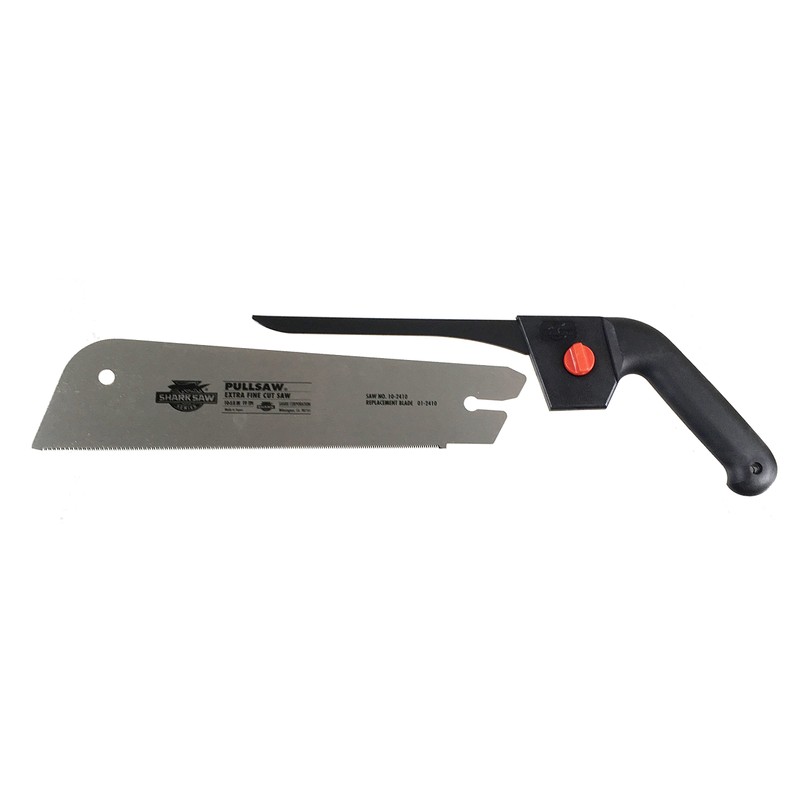 Designed for finish carpenters and skilled woodworkers, this fine-cut finish saw from Shark Corp features a 17-point blade for ultra fast, super-smooth cutting even in hardwoods. An extremely narrow kerf (0.017 inches) performs superbly on those precise molding and intricate trim jobs, and cuts as thin as 1/32 inches. A high-carbon Japanese spring steel blade construction means optimal durability and longer tool life. The blade cuts when drawn toward you for more natural, smoother, straighter, and less fatiguing sawing operations. No downward pressure required, just let the weight of the saw do the work for you. With a spine for extra stability, and an extremely tight, 17-tpi tooth set, this finish saw cuts exceptionally smooth in a variety of woods such as oak, ebony, and exotic imported species such as ironwood. Cuts are ready for immediate gluing; sanding is rarely, if ever, required, making this fine-cut finish saw a boon for furniture makers, boat builders, artisans, and all genres of fine-woodworkers.