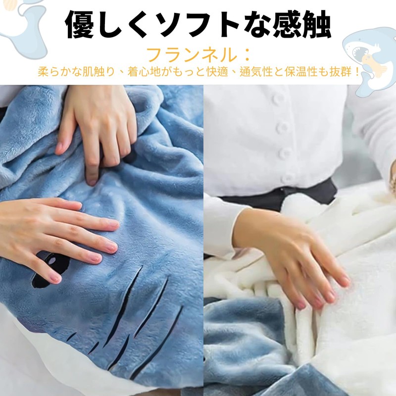 - 【Shark Blanket】Creative shark shape and can be transformed into a shark when worn. More fun than a regular blanket, the Shark Blanket wraps around your feet, feet, head and arms so you can feel the warmth of the blanket throughout your body and keep your hands out