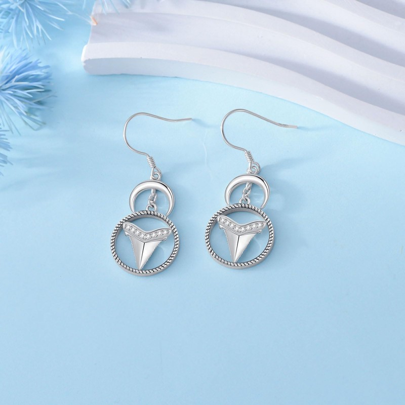 Shark Tooth Earrings 925 Sterling Silver Shark Tooth Dangling Earrings Shark Tooth Gifts for Women