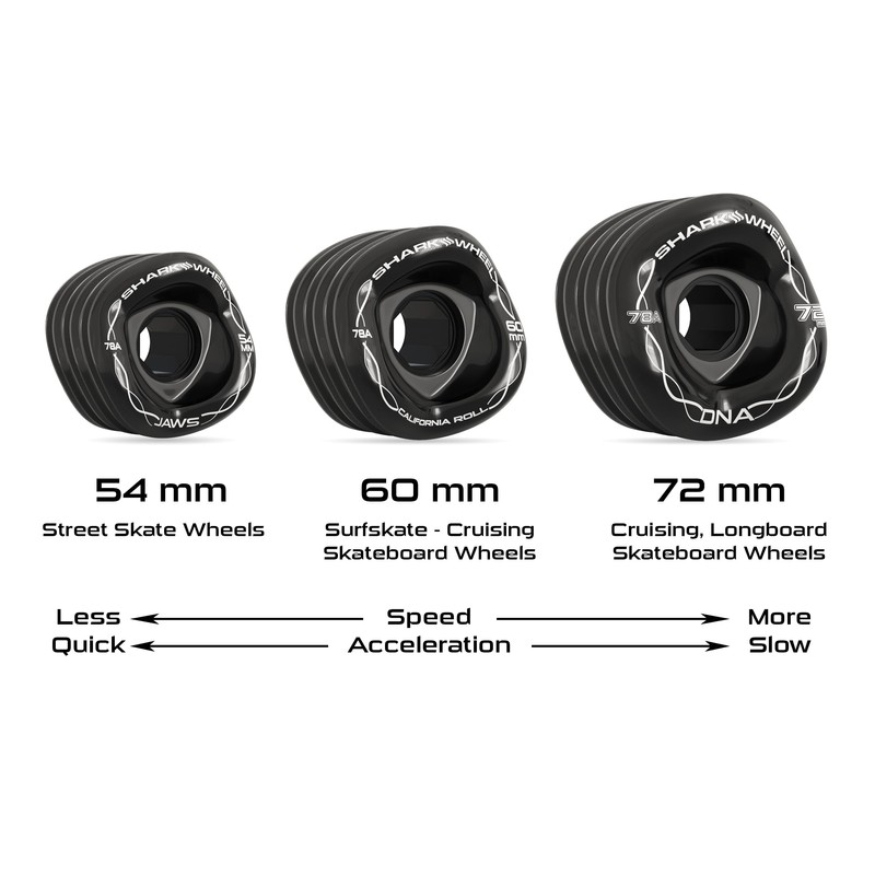 - IMPROVED SKATING EXPERIENCE: Shark Wheels offers a variety of skateboard wheels that provide a number of benefits, including reduced friction, increased longevity, abrasion resistance, and improved off-road performance.