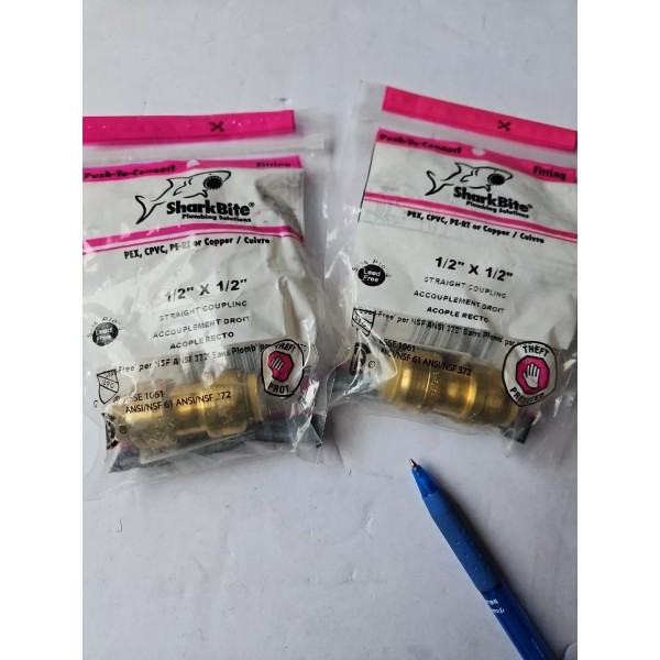 SharkBite U008LFA 1/2"x1/2" Straight Coupling (2 For $12) OMC27. Condition is New. Shipped with USPS Ground Advantage.