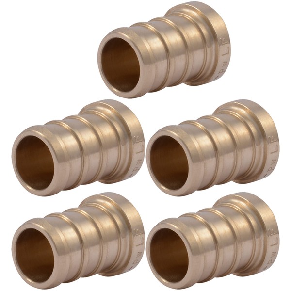 SharkBite 1/2 Inch Crimp Plug, Pack of 5, Brass Plumbing Fitting, PEX Pipe, PE-RT, UC514LFA5