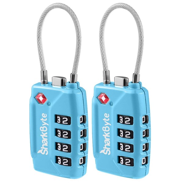 SharkByte TSA Approved Luggage Locks | 4-Digit Combo (10K Combinations) | Secure Suitcase & Gym Bags (2 Pack)