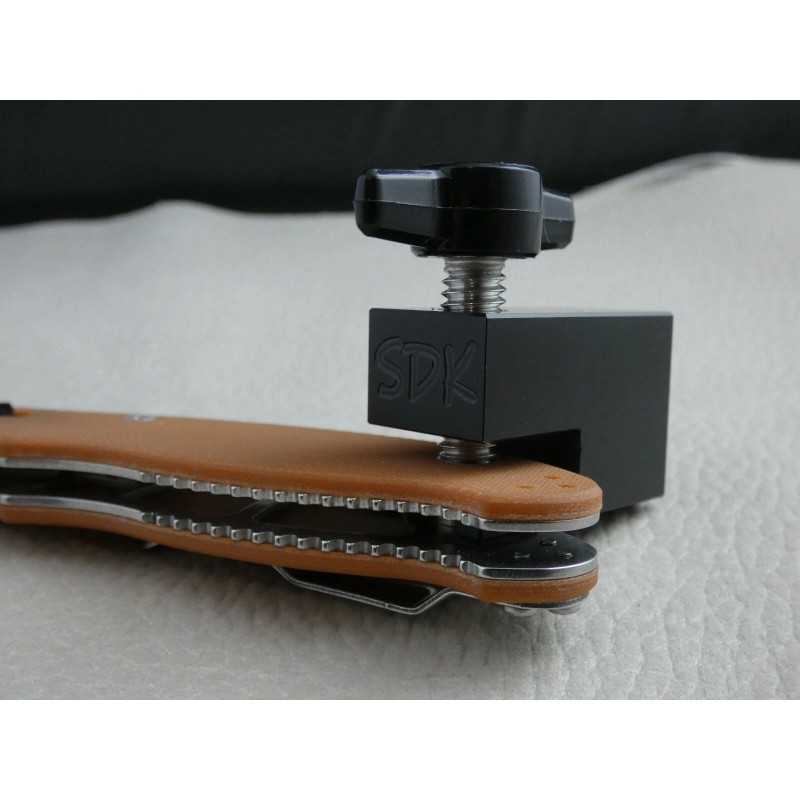 Finally! A tool to quickly and effectively remove stubborn lanyard tubes from your Spyderco Paramilitary 2, Para3, MIlitary 2 and Manix 2. Simply remove the pivot and standoff screws and center tool the on the lanyard tube. Give the knob a couple of turns and the tube pops out.