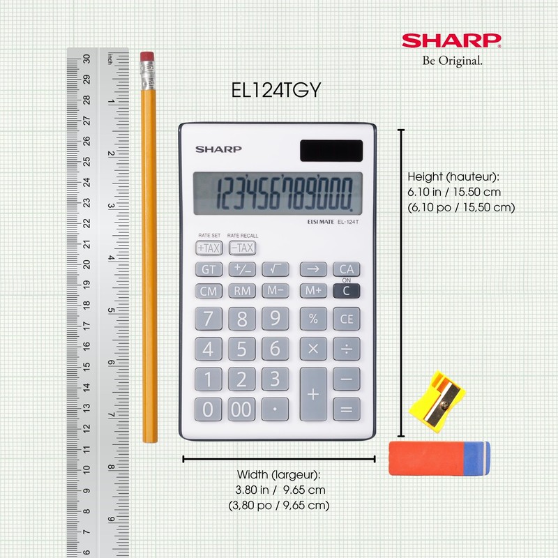 Sharp EL124TGY Twin Power 12-Digit Display Business Calculator